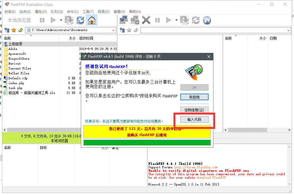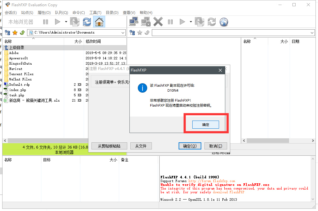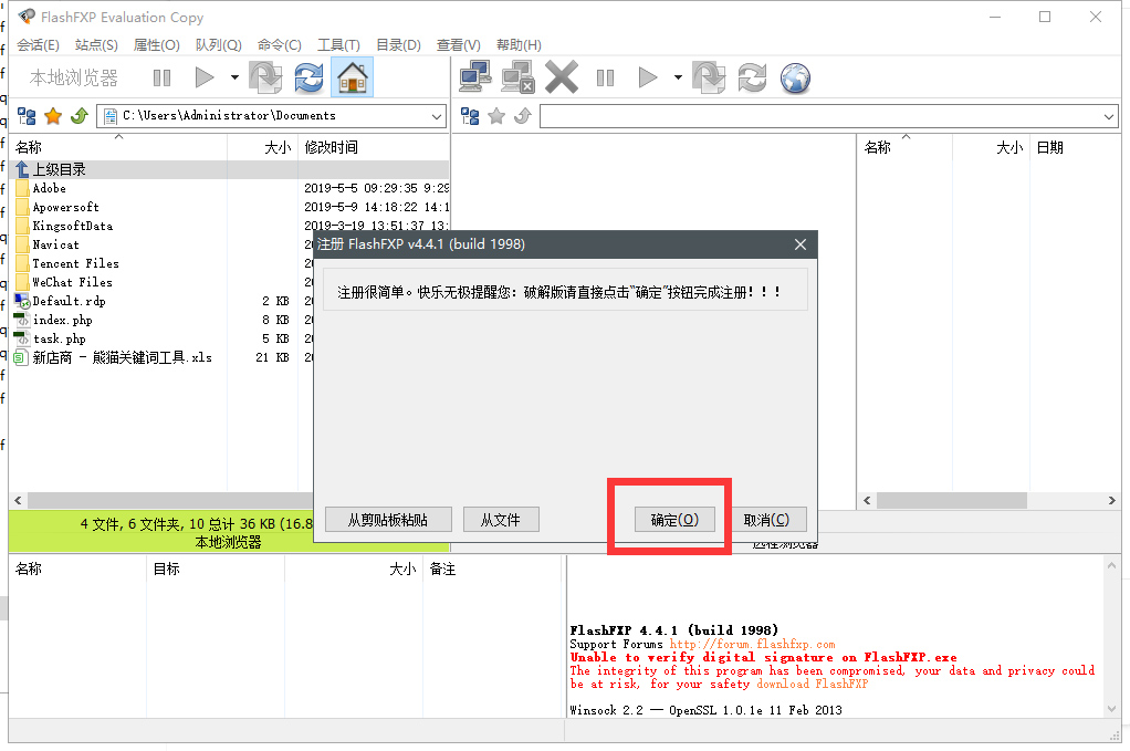 5.點(diǎn)擊“輸入代碼”后,彈出注冊(cè)框,點(diǎn)擊“確定”按鈕;