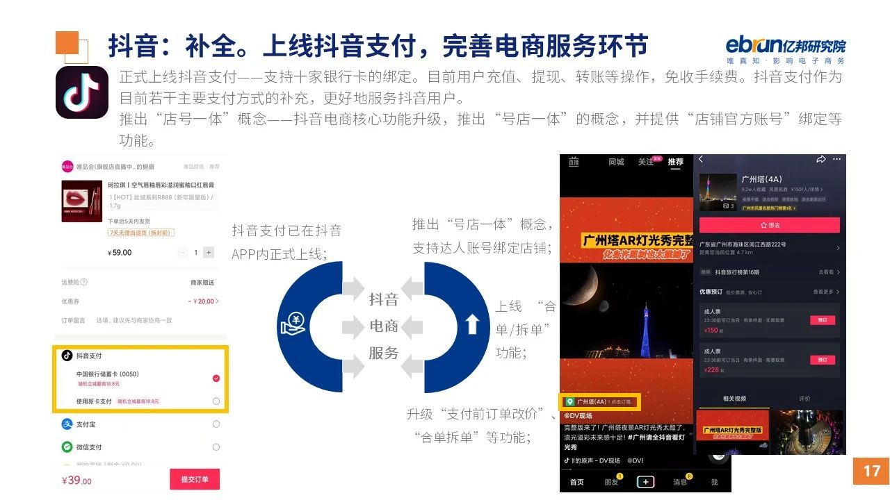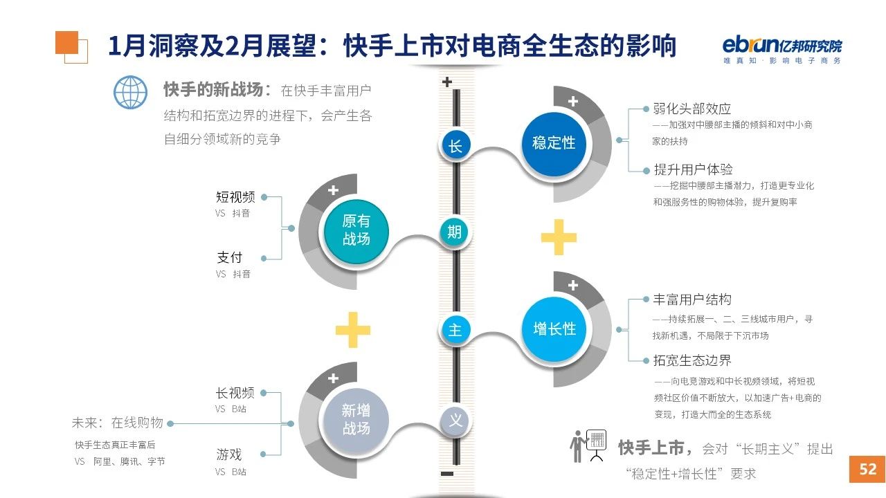 縱觀2021年1月,各平臺豐富自有生態(tài)布局,如淘寶直播(點淘)加入短視頻模式、騰訊重押視頻號、快手加碼電商和小程序、抖音推出支付等;視頻內(nèi)容成為各平臺未來重點發(fā)力方向;“九不得”新規(guī)發(fā)布后社區(qū)團購仍熱情不減;國家和市場對互聯(lián)網(wǎng)巨頭和電商相關(guān)消費加大監(jiān)管力度……你信和不信,你知道和不知道的,都在這份億邦動力研究院正式發(fā)布的